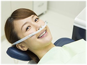 痛みに弱い方、不安が強い方など、恐怖心や不安感の為に気分が悪くなったり、血圧が上昇したりすることもあり、治療に支障をきたしてしまうことが予想される場合は、笑気麻酔(しょうきますい)という鼻から吸入する麻酔をおすすめしています。