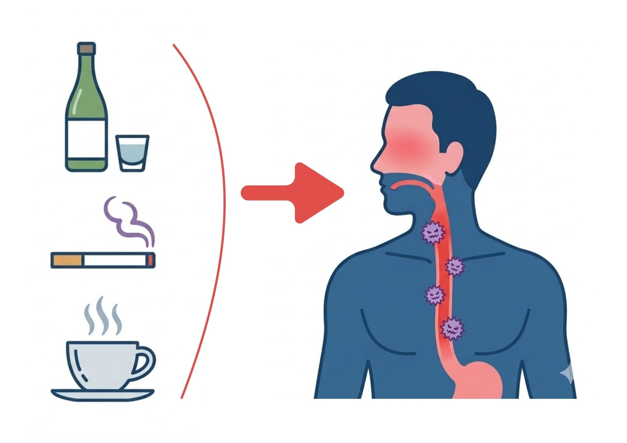 食道がんは、性別や日々の習慣によって発症リスクが何倍にも跳ね上がることが医学的な研究で明らかになっています。