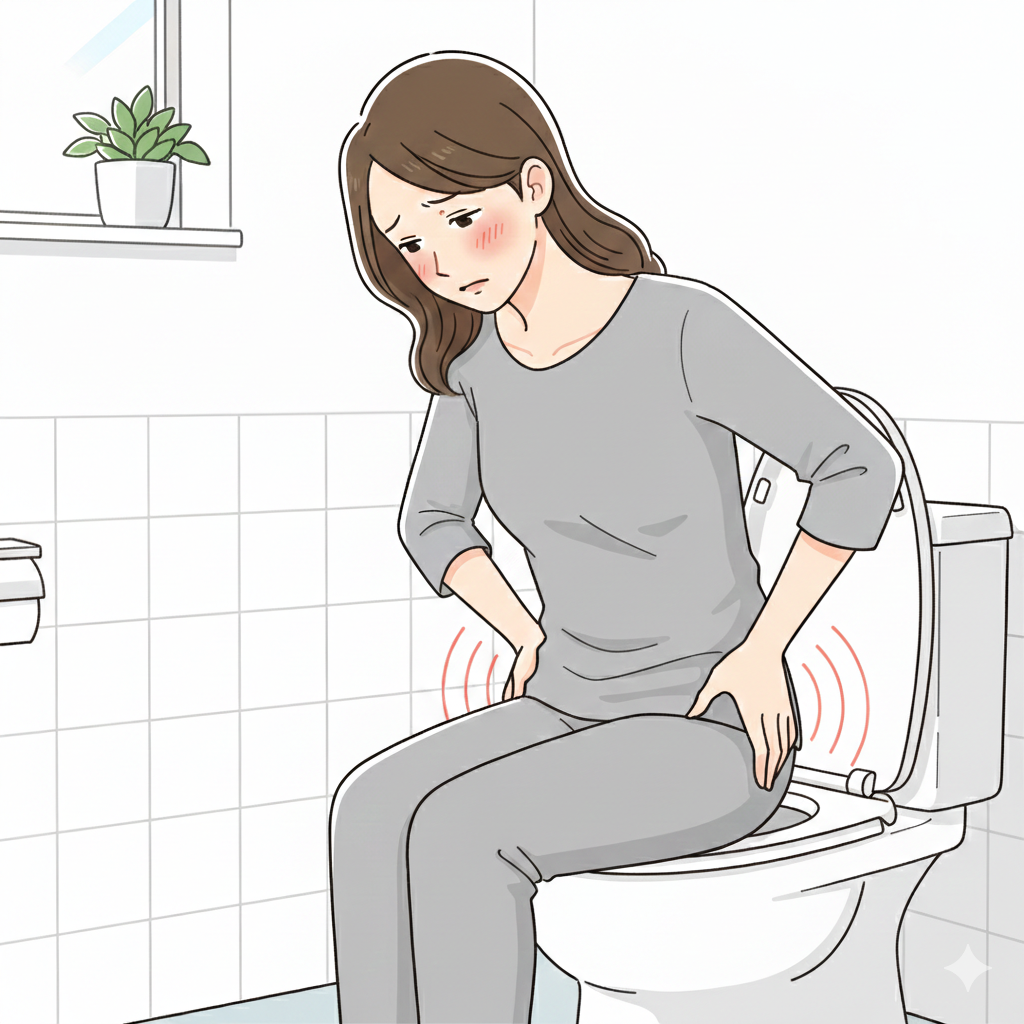 トイレで長くいきむ、スマホを見ながら長時間座り続ける、便秘で硬い便を出す、あるいは下痢を繰り返す。