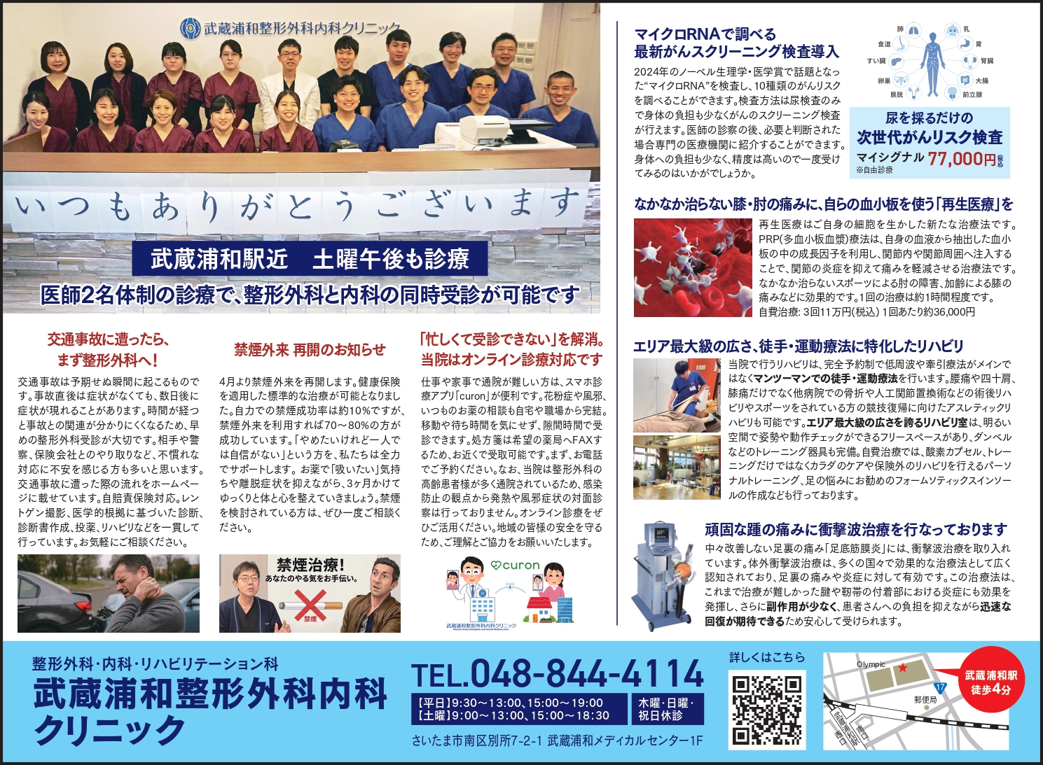 平素より武蔵浦和メディカルセンターをご利用頂きまして、ありがとうございます。 ARIFT4/10号に当院が掲載されました。当院の最新情報が掲載されております。是非ご確認お願い致します。